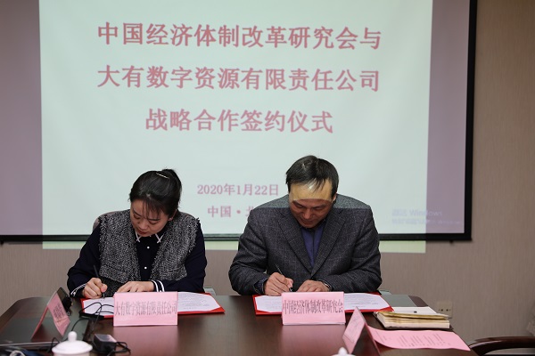 2020年1月22日上午,中國經濟體制改革研究會與理事單位大有數字資源有限責任公司戰略合作備忘錄簽署儀式在我會會議室舉行。我會會長彭森、常務副會長兼秘書長趙艾、大有公司總經理張長江等見證簽約,并就新形勢下如何充分發揮各自優勢,拓寬合作領域,實現資源共享等方面的事宜再次進行了充分交流,進一步深化了合作共識。簽署儀式由趙艾主持。