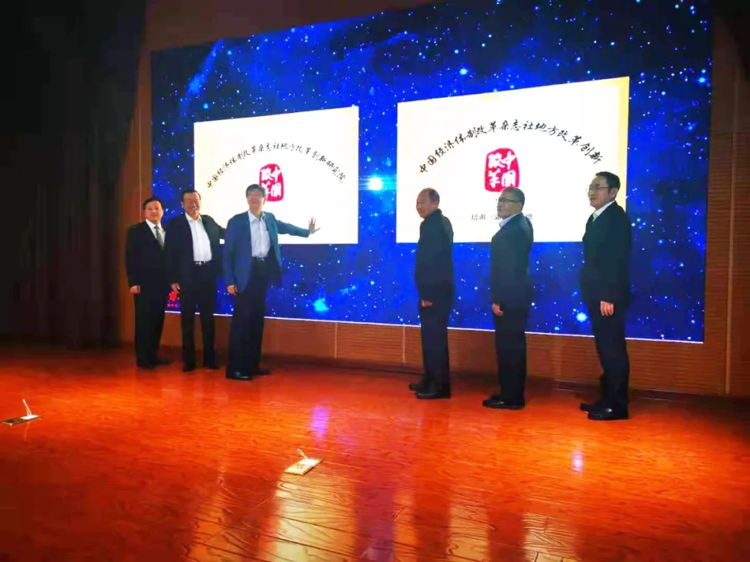 開班儀式上,與會領導專家共同為中國經濟體制改革雜志社地方改革創新研究院淄博分院、地方改革創新培訓(淄博)基地揭牌。