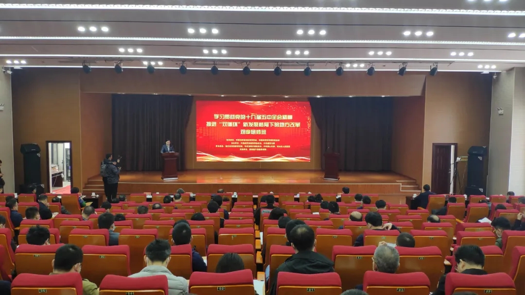 開班式后,趙艾圍繞學習黨的十九屆五中全會精神的認識和體會,作了主旨講座。根據安排,中國經濟改革研究基金會理事長地方改革創新研究院首席經濟學家孔涇源,中央黨校(國家行政學院)教授、社會治理創新工程首席專家馬慶鈺,農業農村部農村經濟研究中心研究員張照新,工信部賽迪研究院企業所所長楊東日等分別為研修班學員授課。