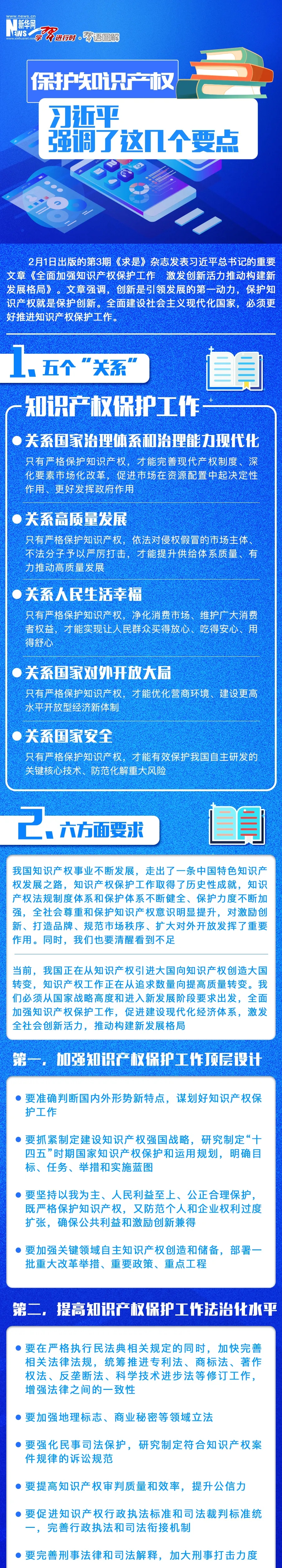 “知識產權保護工作關系國家治理體系和治理能力現代化,關系高質量發展,關系人民生活幸福,關系國家對外開放大局,關系國家安全。”