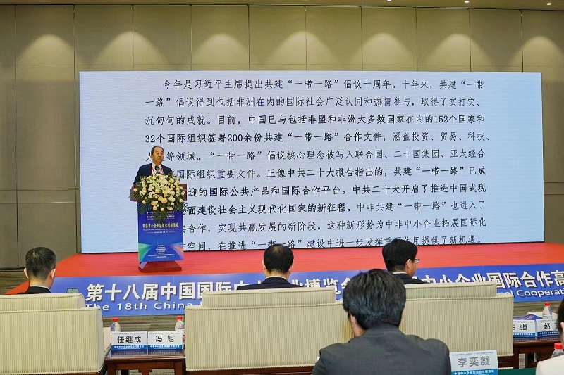 趙艾講到,今年是習近平主席提出共建“一帶一路”倡議十周年。十年來,共建“一帶一路”倡議得到包括非洲在內的國際社會廣泛認同和熱情參與,取得了實打實、沉甸甸的成就。中共二十大開啟了推進中國式現代化,全面建設社會主義現代化國家的新征程。中非共建“一帶一路”也進入了深化務實合作,實現共贏發展的新階段。這種新形勢為中非中小企業拓展國際化互利合作空間,在推進“一帶一路”建設中進一步發揮重要作用提供了新機遇。