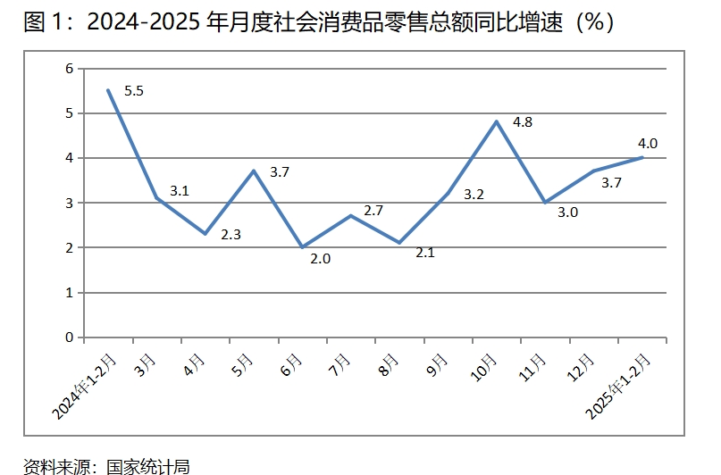 (一)零售增速繼續回升。1-2月份,社會消費品零售總額同比增長4.0%,比上年12月份增長3.7%回升了0.3個百分點,上年12月份比上年11月份增長3.0%回升了0.7個百分點。數據顯示,社會消費品零售總額保持了持續回升的勢頭,這是上年以來采取的以舊換新等系列促進消費政策措施的結果,特別需要指出的是,這一增速是在上年同期基數較高基礎上的回升,更加說明消費增長的動力在增強。