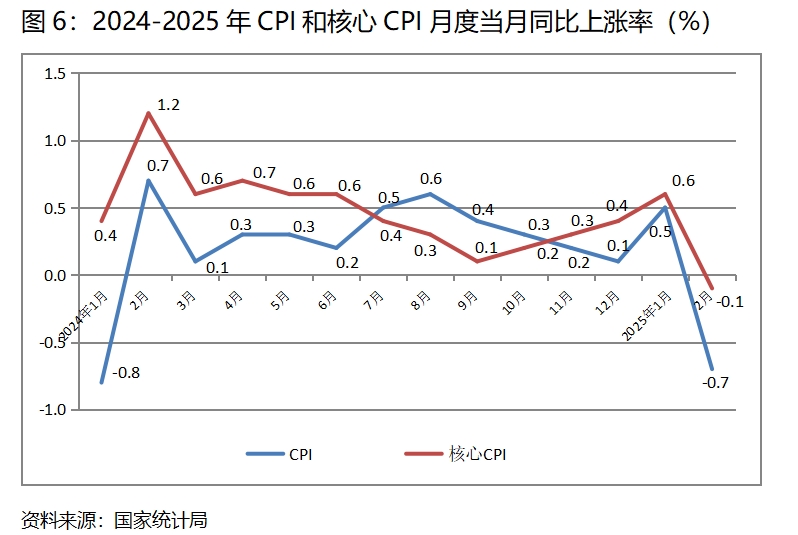 (四)CPI由上漲轉為下降。2月份,CPI同比下降0.7%,而1月份上漲了0.5%, CPI出現了由上漲轉為下降,有今年春節與上年春節錯月因素的影響。其中食品價格下降3.3%,而上月上漲0.4%;非食品價格下降0.1%,而上月上漲0.5%。2月份,核心CPI同比下降0.1%,而1月份上漲0.6%。這其中盡管有春節錯月因素的影響,但CPI下降特別是核心CPI首次出現的下降,還是說明擴大需求還需要進一步加大力度。