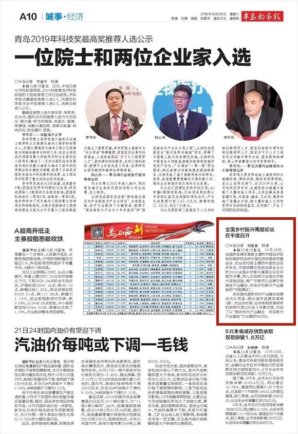 這場在平度舉行的國家級高層論壇受到各級新聞媒體聚焦關(guān)注,中央廣播電視總臺、人民日報、新華社、經(jīng)濟日報、農(nóng)民日報、中國經(jīng)濟時報、山東廣播電視臺、大眾日報、青島廣播電視臺、青島日報等20余家媒體記者到現(xiàn)場采訪報道。10月18日上午,青島廣播電視臺藍睛客戶端現(xiàn)場直播論壇盛況,在線觀看已突破7萬人次。目前,新華社、人民網(wǎng)、鳳凰網(wǎng)、青島廣播電視臺、青島日報、齊魯晚報、青島早報、青島晚報、半島都市報、商周刊、大眾網(wǎng)、中國山東網(wǎng)、青島新聞網(wǎng)等10余家媒體第一時間已刊發(fā)相關(guān)報道。